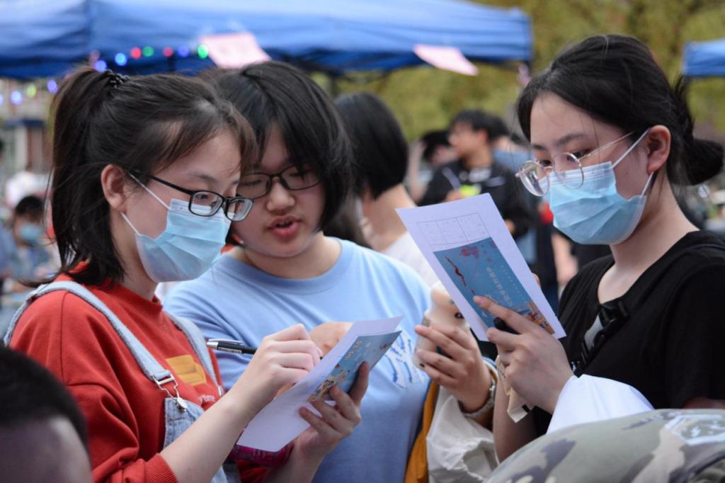 “π”对活动分文化活动、数学模型体验、数学游戏乐园三个模块展开,所有活动采用积分制。文化活动中的“祖国的年年岁岁”活动需要参与者抽取4张写有祖国重大事件(如“四史”、团史、数学史等)小纸条,通过加减乘除运算凑成24点,吸引了大批学生驻足参与;当‘π’遇上飞花令现场金句频出,飞花令接到了“π”的第700多位数字,引得现场观众掌声连连、喝彩不断。