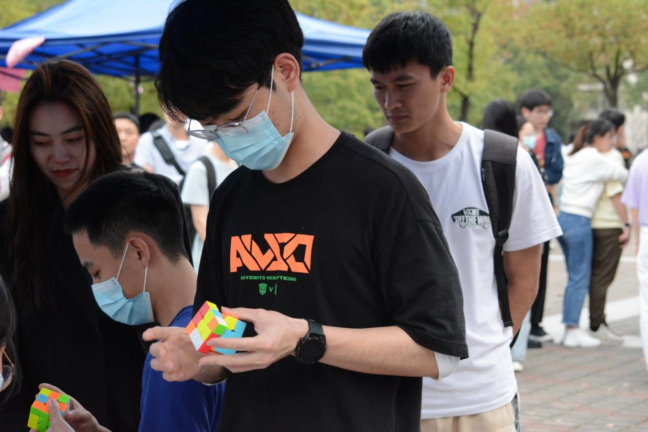 来自乌兹别克斯坦的留学生周尼别克沉迷于挑战数独、鲁班锁、24点、华容道等多个游戏,他说道,“每一种游戏都非常有特色,非常好玩,我根本没法停下来!”他还带来了两位分别来自孟加拉国与乌兹别克斯坦的朋友前来参加“π”对,乐享其中。