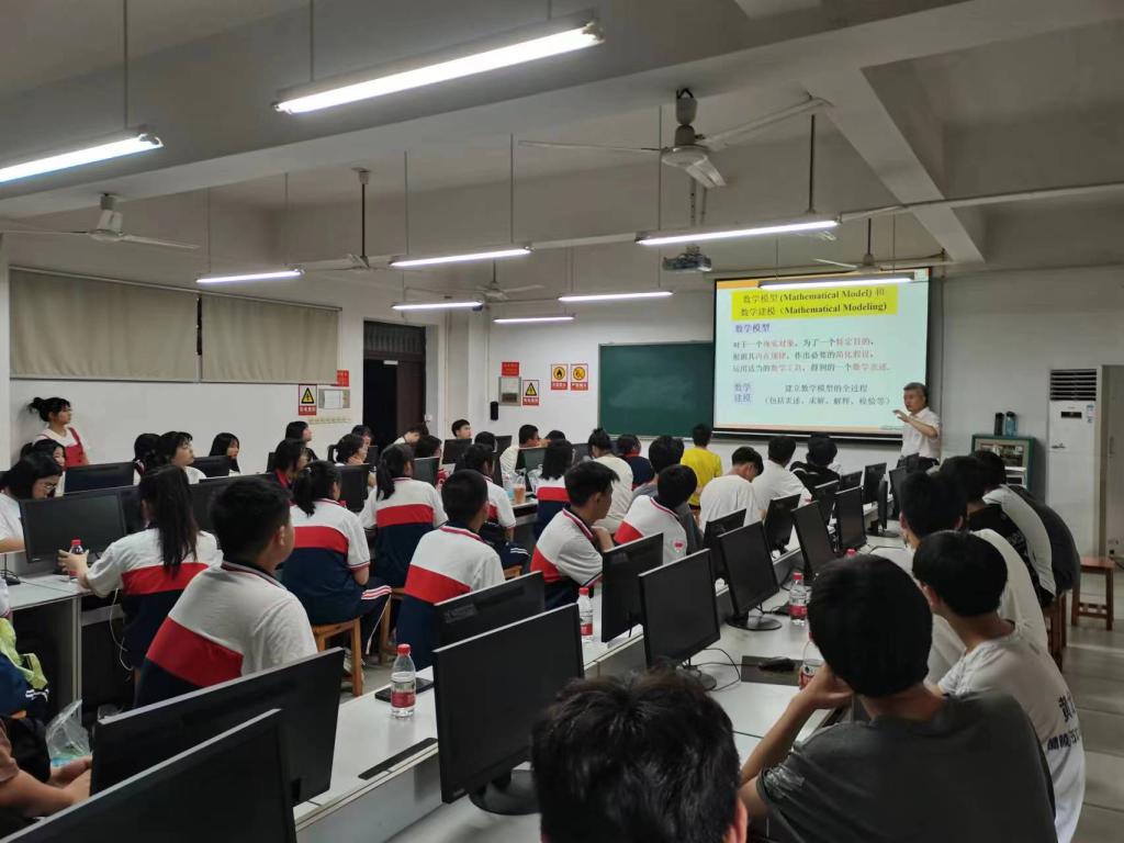仝青山在理科楼A310向同学们介绍了学校和学院基本情况,讲述了学院办学理念、人才培养模式、专业特色等情况,以及近年来学院在教学、科研、人才培养等方面的成果。随后,仝青山同学们介绍了数学建模的魅力,在介绍数学建模的过程中,从同学们初一学过的“航行问题”入手,向同学讲解建立数学模型的全过程。同时为了让同学对数学建模有个更直观的认识,他通过MATLAB软件编程解决一个路线规划问题,并告诉同学们许多数学问题都要借助强大的计算机软件去计算。