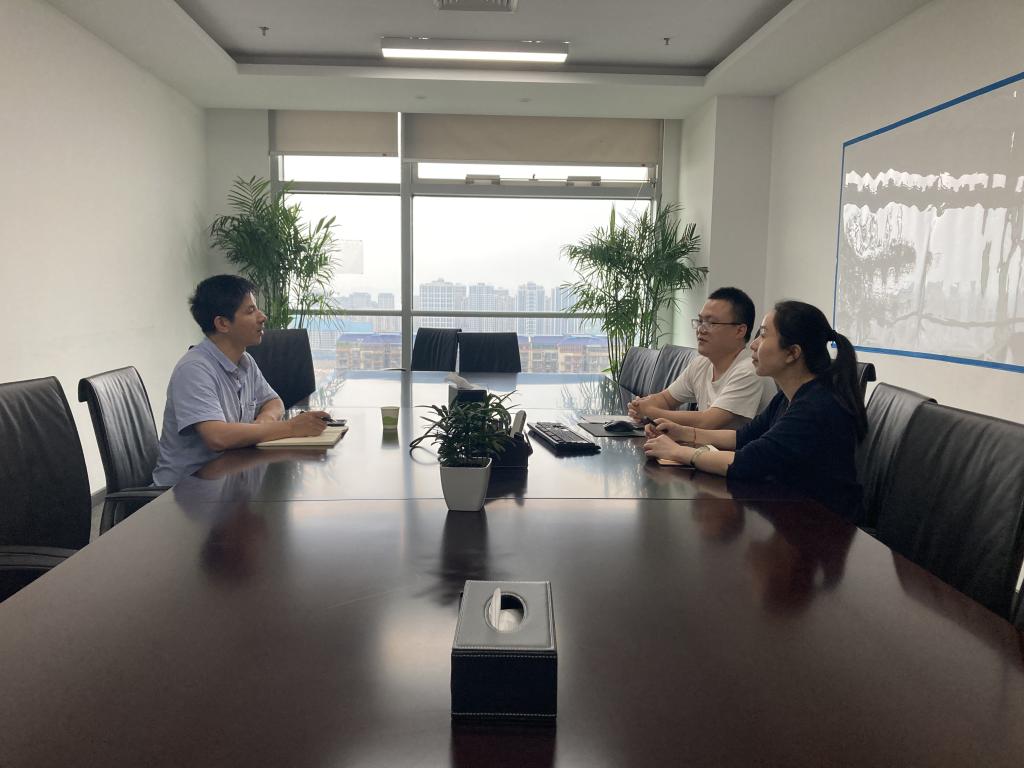 在湖南湘江时代融资租赁有限公司,郑忠辉与公司董事会办公室主任、行政人力资源总监李尚尚和技术部经理胡小乐深入沟通,李尚尚介绍了公司基本情况,并表示欢迎学生到公司实习和就业。胡小乐作为校友,详细介绍了他在公司成长历程,对学院的人才培养提出了很好的建议。