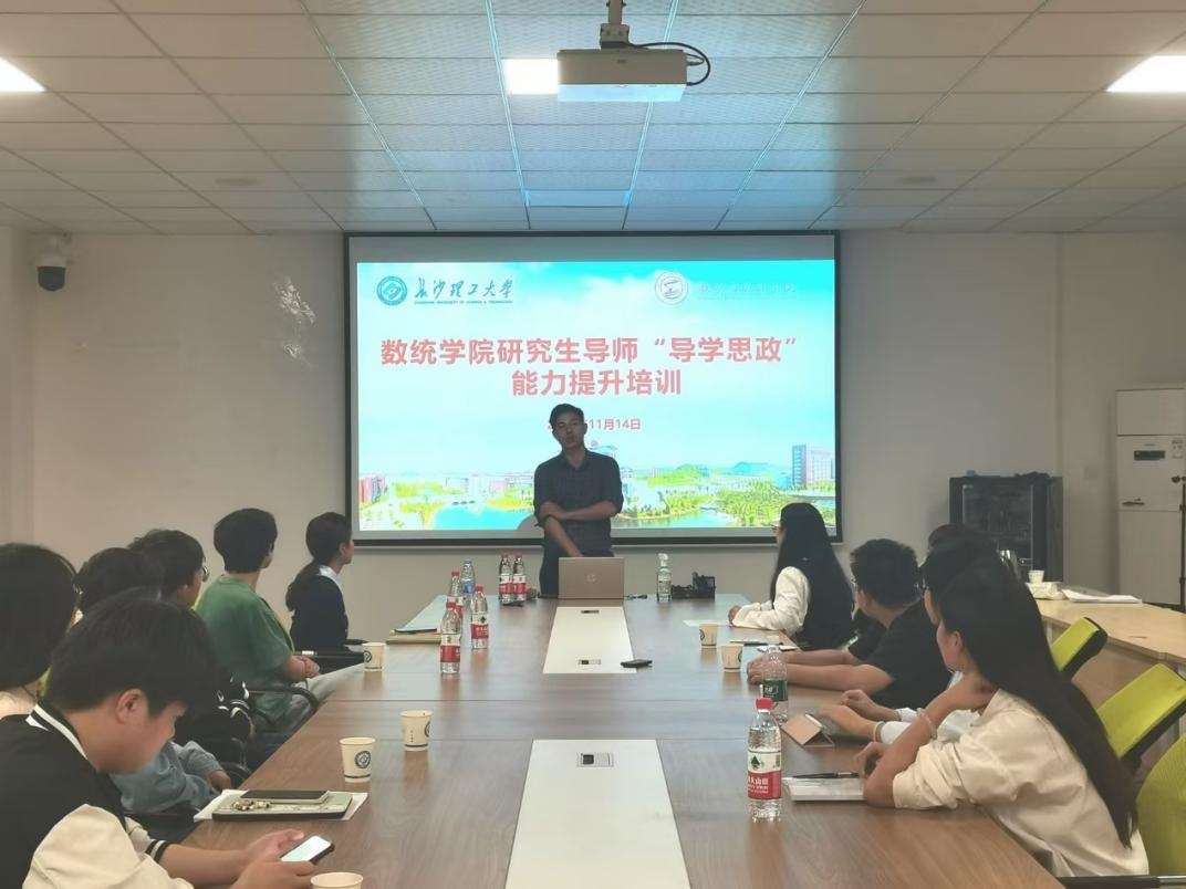 为全面加强导师思政教育工作,提升导师的思政素养和育人能力,11月14日下午,数统学院在理科楼A212举办了导师“导学思政”能力提升培训,此次培训由学院党委副书记、副院长郑忠辉主讲,学院新任硕士生导师和博士生导师,以及部分研究生代表参与。