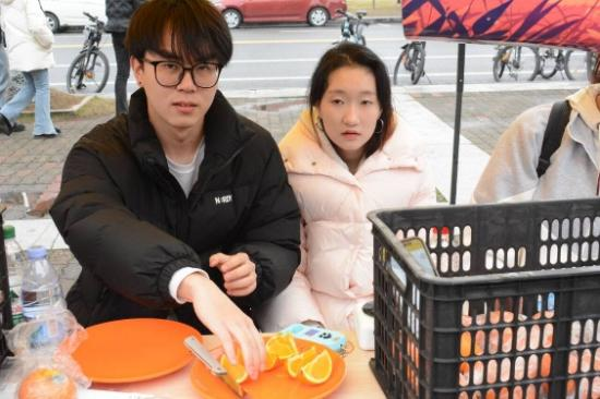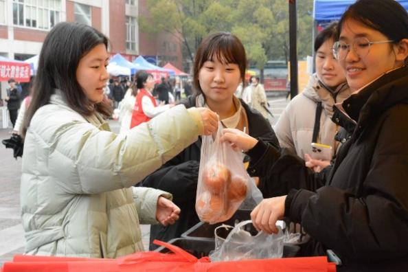 此次活动以小组竞赛形式展开, 21支队伍踊跃参与。3月10日至14日,汀香园前坪热闹非凡,线下摊位销售红红火火。部分队伍还创新采用“线上订购、线下配送”模式,多渠道助力脐橙销售。活动现场,各队伍热情高涨,积极宣传,不少队伍推出试吃活动,饱满多汁的脐橙吸引众多同学驻足购买。
