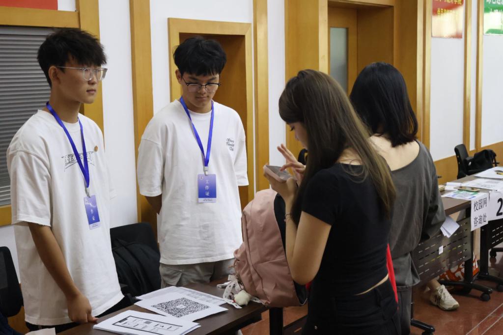 迎新现场,各项工作井然有序。我院设立的报到处、咨询台等功能区域标识清晰,由学长学姐组成的志愿者团队早早到岗,分工明确、热情满满。从引导新生核验身份、办理报到手续,到协助搬运行李、指引宿舍方向,全程“一对一”贴心服务,用耐心与细致化解新生及家长的陌生感。