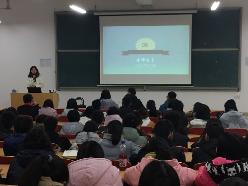 伊始,各部门进行十一月,十二月工作总结并汇报寒假及下学期工作计划,办公室干事代表首先发言,随后学研部、组织部、朋辈心理部等13个部门依次进行了部门工作汇报。紧接着,主席团副主席李亚秋上台发表讲话,各部门干事也纷纷上台分享了自己的感受与心得。接下来,学生会主席周有为进行了学生会年终考评结果宣读。然后马丽发表讲话,肯定了全体学生会成员前一阶段工作,并对大家的学习及工作提出了许多要求。最后,郑国义对每个部门的工作做出了肯定,也对一些不足提出建议。
