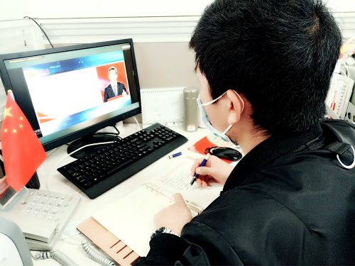 3月9日下午,数学与统计学院团委组织师生通过人民网、人民智云客户端、人民视频客户端、咪咕视频客户端、学习大国公众号等收看了由教育部社会科学司、人民网将联合举办“全国大学生同上一堂疫情防控思政大课”。