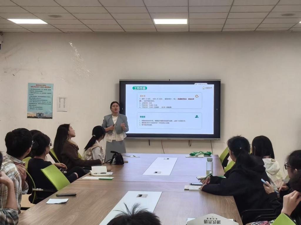 在互动答疑环节,同学们就岗位职责、工作地点、薪资构成、发展前景等关心的问题踊跃提问,企业代表逐一给予了耐心细致的解答。许多同学在现场就递交了个人简历,并与招聘人员进行了深入的面对面交流,部分同学更是通过现场试讲,与心田花开达成初步的就业意向。