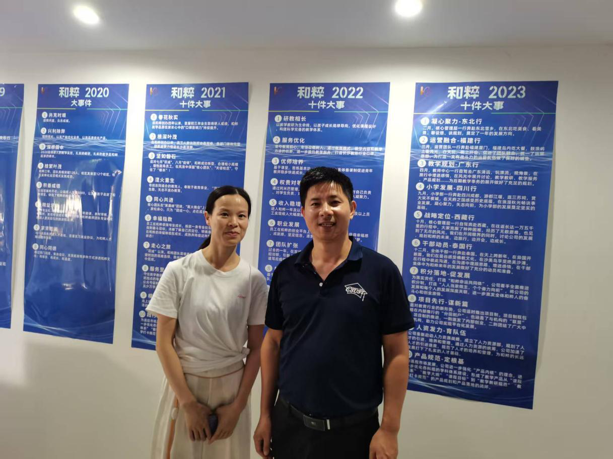 在公司人力资源部副主任武凤旗的陪同下,郑忠辉首先参观了和粹教育的办公环境、教学研发中心、教学平台展示区等,实地了解了企业的运营模式、企业文化、办学规模及工作环境。武凤旗指出,公司拥有成熟的教学研发体系、优秀的师资团队、良好的市场口碑,致力于为学生提供个性化、高质量的教育服务解决方案。