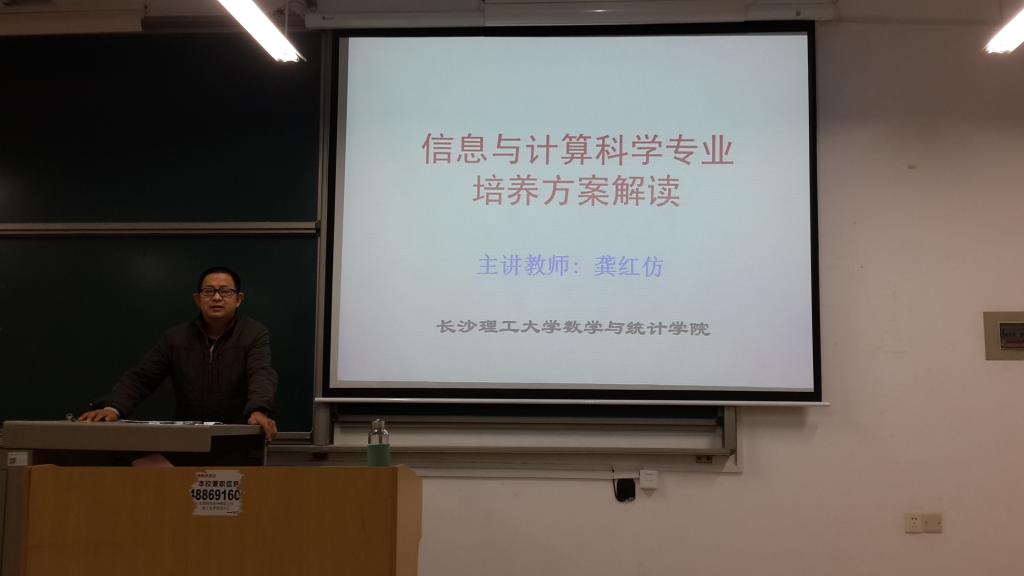 2017年11月13日下午4:00,信息科学系系主任龚红仿副教授给2017级信息与计算科学专业全体学生解读了《2017年信息与计算科学专业本科培养方案》,并简要介绍了信计专业的发展历史。