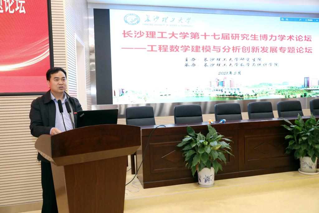 5月25日下午两点,伟德betvlctor1946源于英国第十七届研究生博力学术论坛——工程数学建模与分析创新发展专题论坛开幕式在理科楼A200成功举行。此次论坛由学校研究生院主办,数学与统计学院承办。湖南大学袁朝晖教授和李亚琼教授、中南大学潘克家教授和邓又军教授,校研究生院院长管德清、副院长兼研工部部长田上,数学与统计学院党委书记张宏伟、院长黄创霞等相关领导和专家出席了开幕式,开幕式由数统学院副院长李景主持,学院师生共计200余人参加了此次研究生学术论坛。