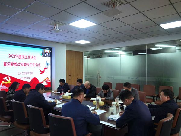 3月29日上午,土木学院党委在工二A401召开2022年度民主生活会暨巡察整改专题民主生活会。会议由学院党委书记江河主持,学校党委副书记刘建民、纪委办公室主任、监察处处长方文彬参会并指导。