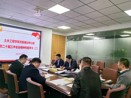 12月5日上午,土木学院党委理论学习中心组专题学习党的二十届三中全会精神。学院党委书记江河主持会议,全体中心组成员参加。