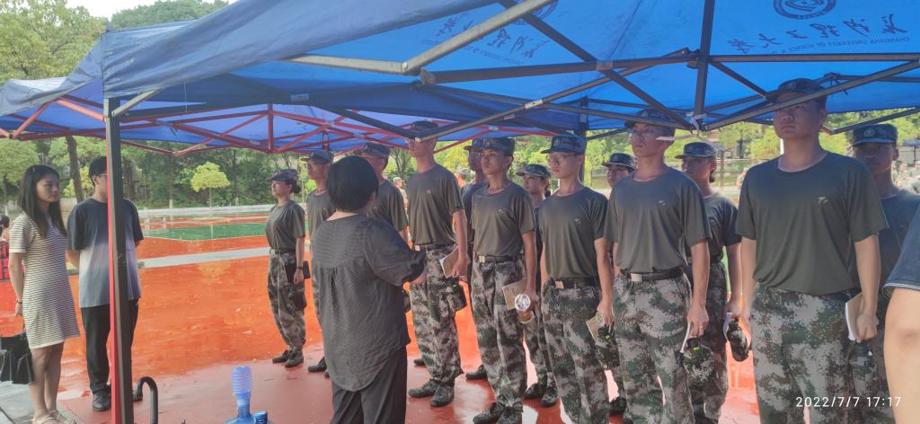 土木学院全体民兵连教官整齐列队,热烈欢迎院领导及学工办老师们的到来。黄阿明首先代表学院向对各位教官的辛勤付出表达了衷心的感谢,并认真听取了军训教官关于开展军训组织情况的报告,教官们纷纷表示希望通过军训培养新生吃苦耐劳和严谨的精神,帮助军训学生尽快适应大学生活。