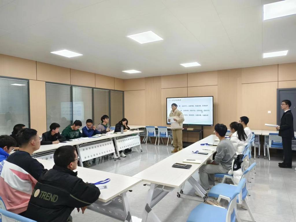 会议伊始,主持人介绍活动流程,而后日常管理组、文明督导组、学风督导组的代表依次上台,主要围绕本学期换届后的管理和运行、优寝率、上课情况等做出详细汇报。在自我介绍这一环节中,各位同学落落大方,积极交流,拉进了彼此之间的距离。