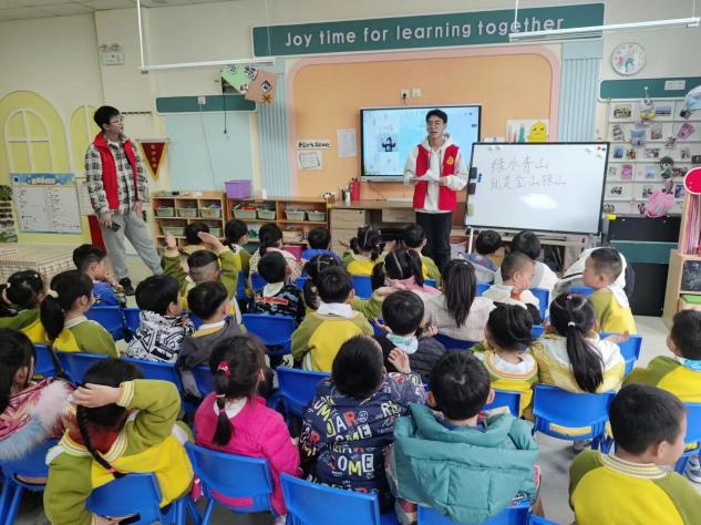 为了进一步提升中小学生环保意识,班级同学前往金色梯田.哈佛小镇幼儿园进行植树节宣讲活动,引导幼儿学习环保知识。宣讲员徐翼航、蒋志鹏通过讲解植树节的相关知识,联系实际为幼儿园小朋友讲述保护环境的具体举措,并分享了山体滑坡与泥石流安全防护等知识。最后,宣讲员们以学儿歌,画绿植等有趣的互动方式向小朋友表述了保护自然,绿色发展的重要性。