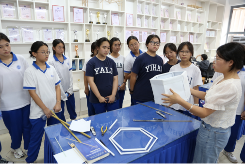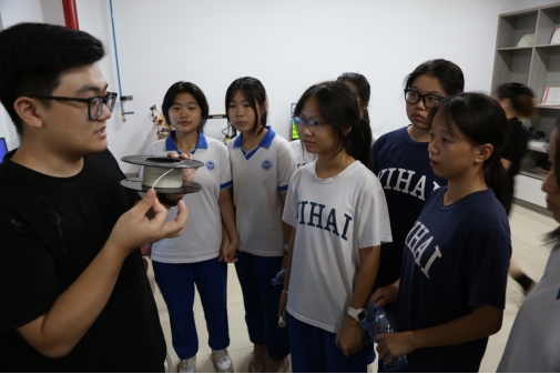在老师和志愿者的引导和讲解下下,怡海中学的师生们首先参观了科创中心的3D打印机、结构设计训练室、先进成图训练室和电气学院的机器人实验室等地,实地感悟了伟德在科学研究、技术创新、学科竞赛等方面的成果,让中学生们对科技创新有了更深刻的认识,激发了他们热爱科学、探索未知的兴趣。随后,师生们来到“三全育人”教育基地。师生们在讲解员的带领下参观了教育基地,同学们积极参与互动体验,感受大学校园文化的魅力。