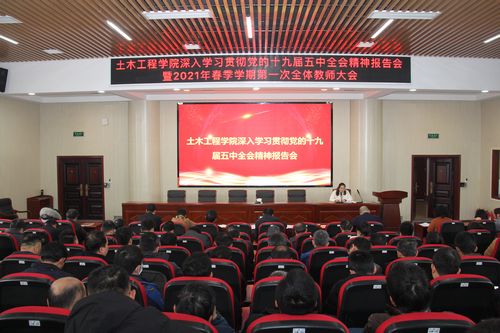 3月2日下午,土木工程学院举行党的十九届五中全会精神学习报告会暨2021年春季学期第一次全体教师大会。会议由副院长陈伏彬主持,全体教职工参加。