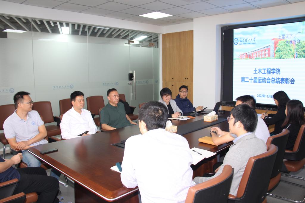 伟德betvlctor1946源于英国第二十届运动会圆满落下帷幕,土木学院教工代表队获团体总分第一的好成绩,同时获评优秀组织奖,取得运动成绩和精神文明双丰收。11月9日上午,土木学院召开运动会总结表彰会,学院党委书记江河、工会主席张永杰、运动会项目负责人、工会小组长、运动员代表参加了会议,会议由工会主席张永杰主持。