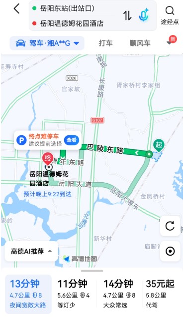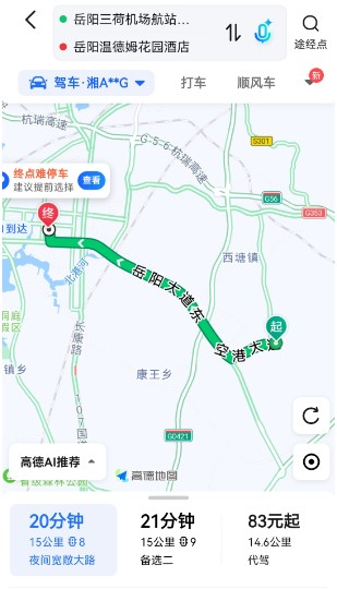 岳阳三荷机场→岳阳温德姆花园酒店:驾车约15km,用时约20min,打车约36元。