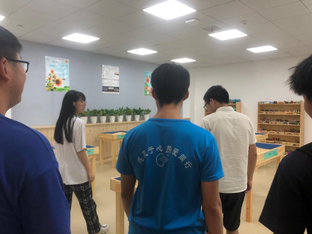 朋辈互助员们在心理健康中心工作人员的带领下首先来到的是干净整洁的心理接待室,之后是个体咨询室、团体辅导室和心理沙盘室。参观过程中,引导员对各功能室与心理设备做了详细的介绍与说明,参观人员也积极地参与其中,体验了放松减压椅和沙盘游戏,对咨询室中各种相关设施的作用和使用方法有了进一步了解。