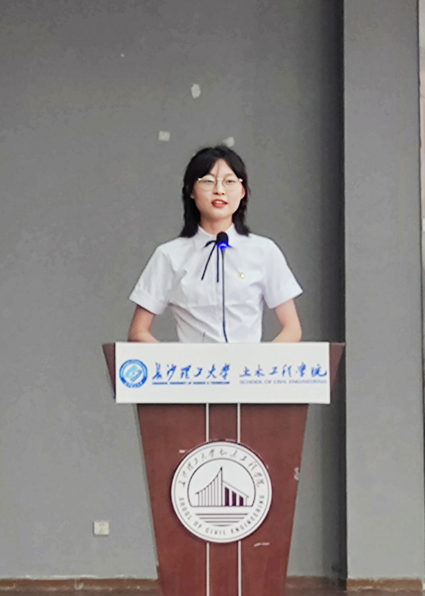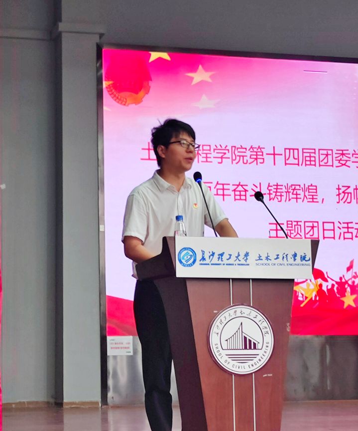 董治佑发表讲话,以“砼”字为核心,分别从“砼”心“砼”德,“砼”行“砼”在,一“砼”奔跑,共“砼”奋斗四个方面阐释土木文化内核,他指出土木学院之所以能在各类赛事中取得良好成绩,与土木学院的强大的向心力与凝聚力是分不开的,期望各个部门之间要保持紧密的联系,上级与下级之间,干部与同学之间也要保有共“砼”奋进的良好氛围。