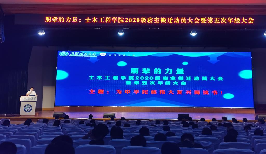 为加强年级学风建设,充分发挥身边优秀朋辈的榜样力量,为寝室搬迁做好前期的动员和统筹规划,7月5日,土木工程学院在五教大礼堂召开了2020级寝室搬迁动员大会暨第五次年级大会。2020级年级辅导员文岚老师,2021届优秀毕业生侯梓维,16位朋辈演讲者及全体学生参加会议,年级辅导员李小军主持大会。