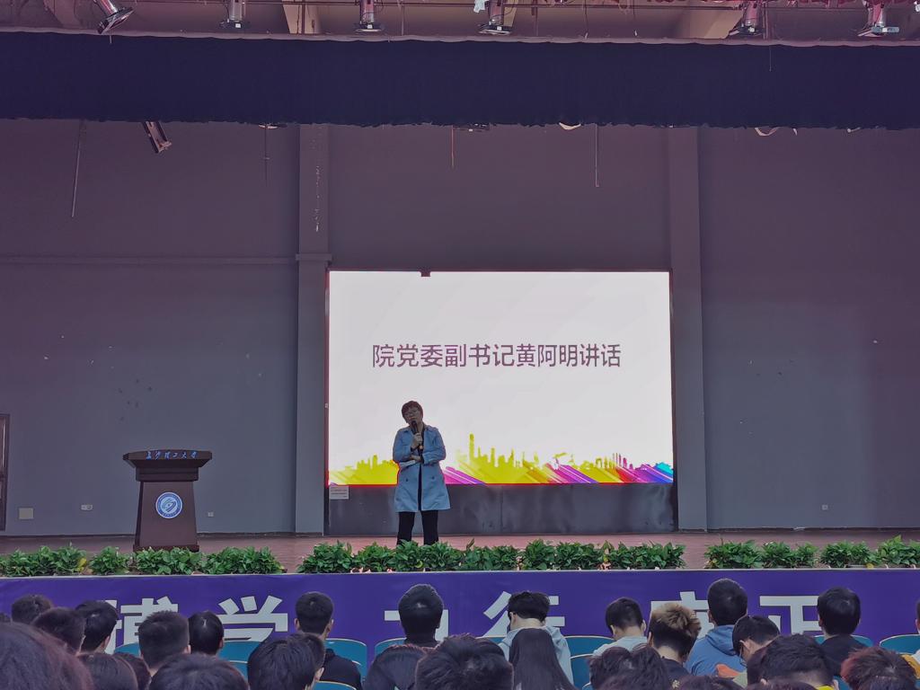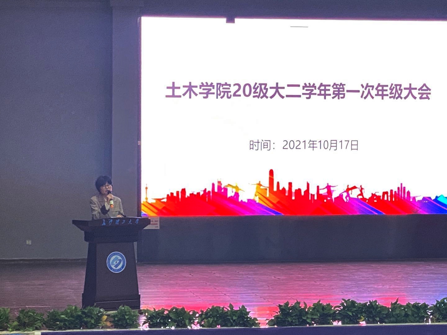 为加强新学期年级学风建设,帮助同学们做好个人规划,10月17日晚,土木工程学院在学生活动中心报告厅分批次召开了本学期2020级第一次年级大会。学院党委副书记黄阿明、2020级辅导员肖雅兰以及全体2020级学生参加会议。会议由2020级辅导员文岚主持。