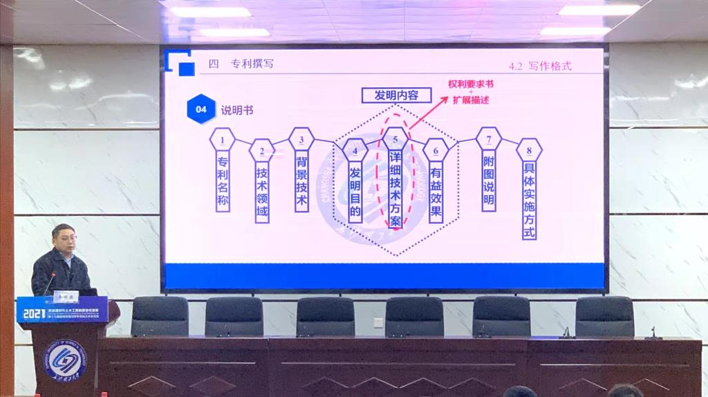 查焕奕以“专利申报:从0到1的突破”为主题,讲解了何为专利,如何构思专利、撰写专利、申请专利。并以“用于岩土体内部的高效吸排水管”发明专利为例,详细介绍了专利申请书、摘要及附图、权利要求书、说明书及附图的具体撰写流程和方法。最后,他还强调了专利的撰写和发表对于提升科研能力的重要性。