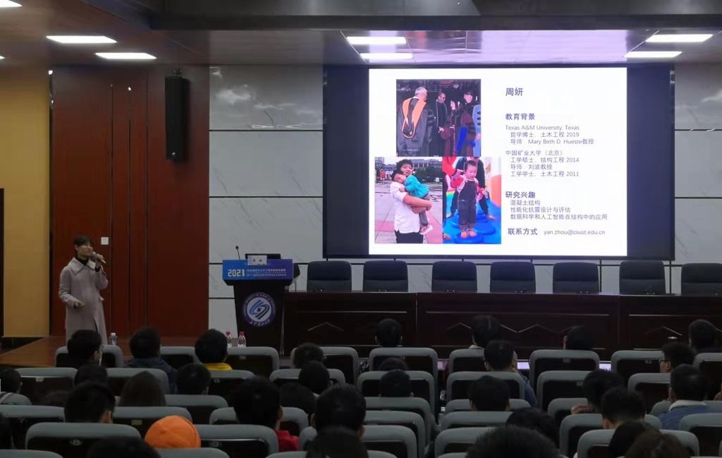 12月1日,土木工程学院研究生心理健康教育专题讲座于金盆岭校区四号教学楼报告厅举行。学院青年教师周妍博士做了题为“如何面对科研压力”的心理健康讲座。研究生辅导员李小军老师及200余名研究生参加讲座。