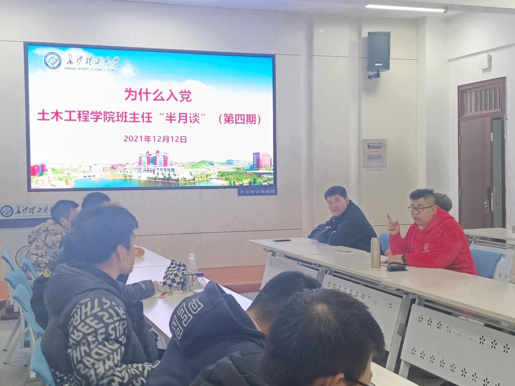 为进一步深化理想信念教育,加强班级思想建设,及时了解、准确掌握新生入学后的思想动态,加强做好大学生思想政治引领的针对性、实效性,12月12日晚,土木工程学院在院学生发展中心开展班主任“半月谈”(第四期)活动,围绕“为什么入党”主题,聚焦本科新生思想引领。智能建造2103班班主任李小军老师及全体入党积极分子参加活动。