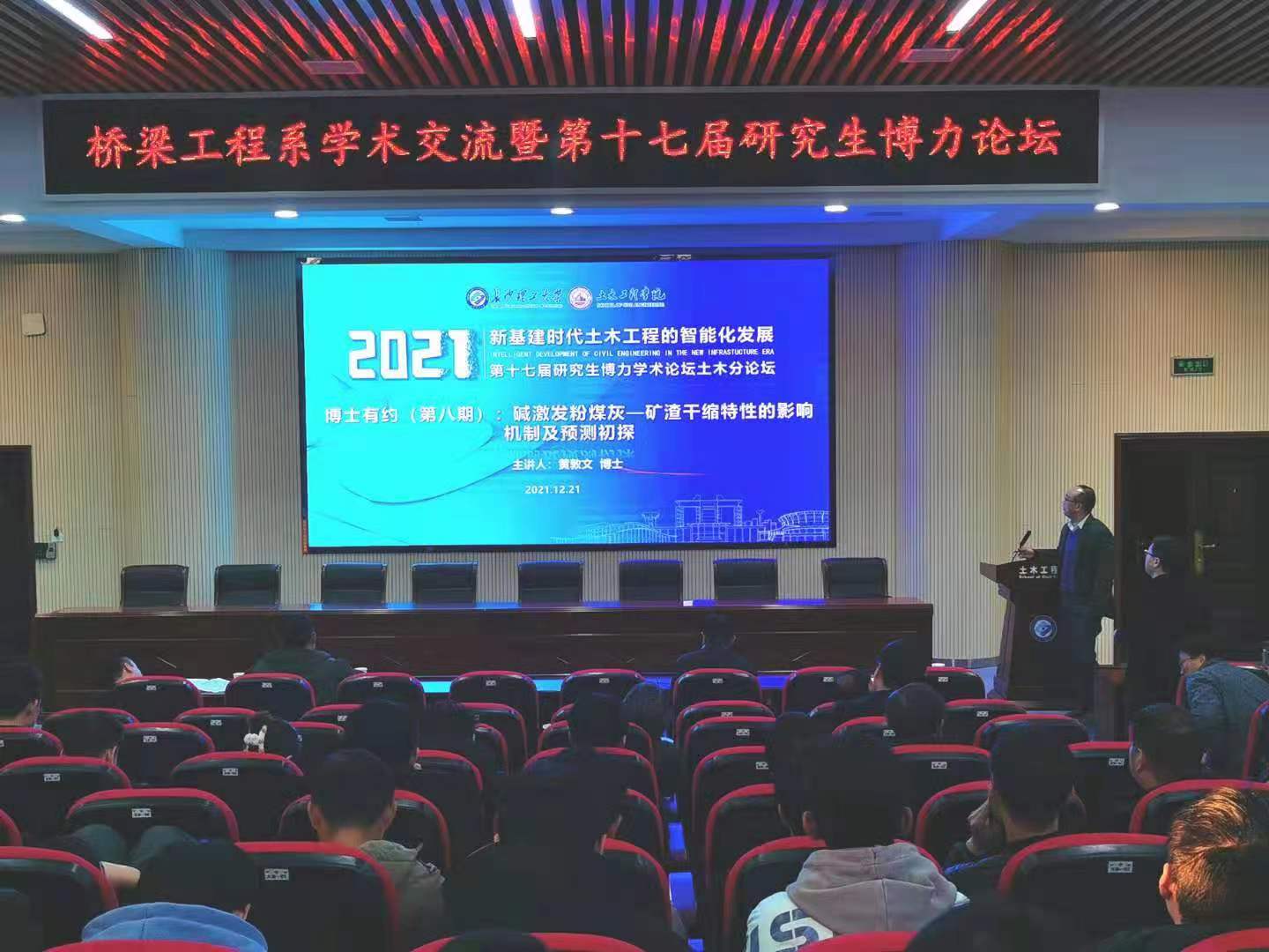 12月21日,土木工程学院博力学术论坛系列活动之“博士有约”(第八期)学术沙龙在云塘校区工二B302报告厅举行。黄墩文博士应邀主讲,桥梁工程系部分教师及170余名硕士研究生参加活动。