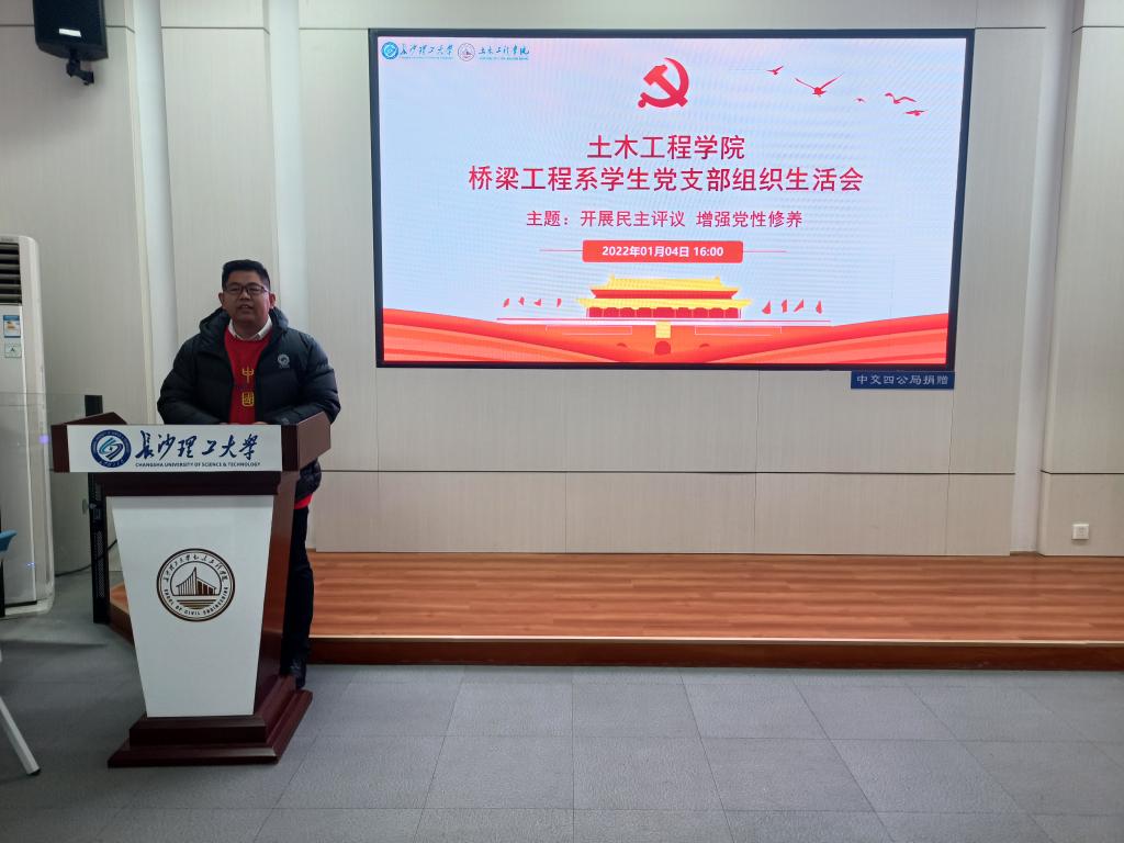 为总结支部工作,查摆个人不足,1月4日下午,土木工程学院桥梁工程系学生党支部于学生发展中心开展2021年度组织生活会。支部书记李小军老师及全体学生党员参加。