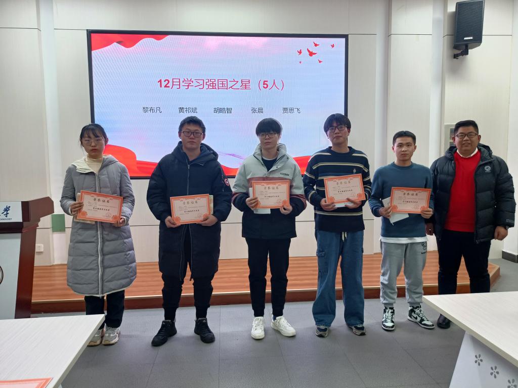 本次表彰活动共对11月、12月各5位月度“学习之星”以及2021年度10位“学习标兵”进行了表彰。支部书记李小军老师一一为获奖者颁发了荣誉证书和奖品并合影留念。