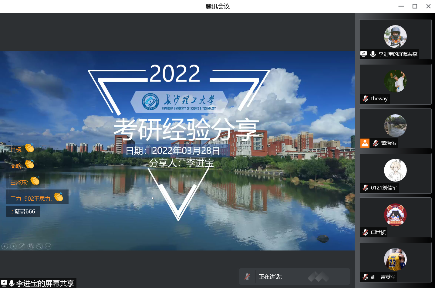 3月31日晚,土木学院成功举办第四期“土木青年说”—“保研与考研”经验分享交流会,近两届考研与保研的同学们与19级学生“隔空交流”。应当下疫情防控要求,本次会议以线上形式召开,并由学工办董治佑主持。