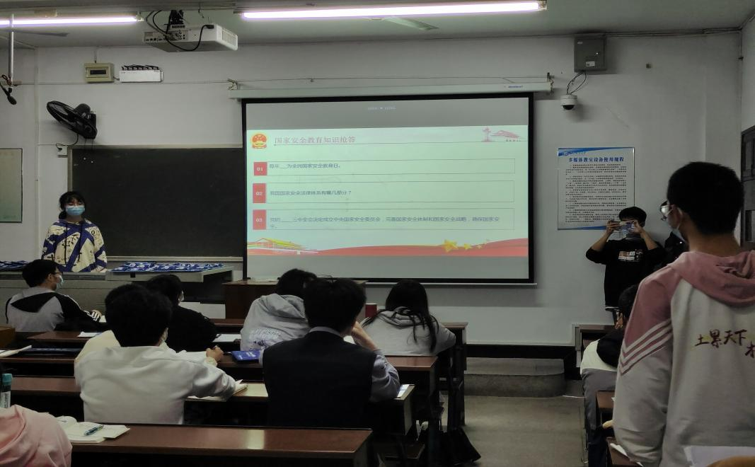 该活动获得师生积极响应,辅导员利用课间时间走进学生课堂,以生动翔实的案例讲解,普及安全知识,分析国家安全形势;专业老师、班级学生巧用课间五分钟,以讨论的方式渗透安全意识渗;各党支部采取主题党日活动形式,引导支部党员思考如何从自我做起维护国家安全;各班自发开展相关国家安全教育主题班会,班会设观看《国家安全法》《反恐怖主义法》等法律宣传影片、知识抢答、分组讨论、自由发言等环节,同学们畅所欲言,分享自己关于国家安全的思考与见解。