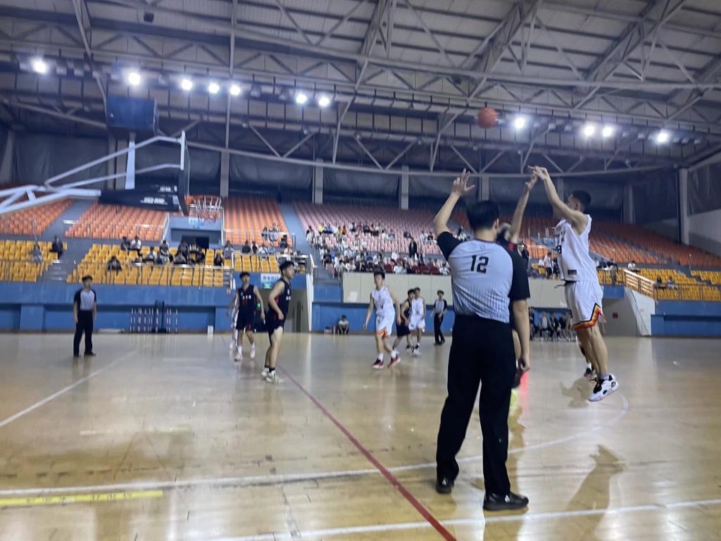 随着裁判一声哨响,比赛正式开始。赛场上,双方队员活力高涨,你争我夺,轮番发起进攻与防守。队员们士气高涨,出色的配合以及迅速的回防给场上制造了紧张刺激的气氛。赛场下,观赛的同学为队员们加油助威,体育部部长王海川带领相关人员为球队做好后勤保障工作。一时篮球场内的观众们热情高涨,气氛活跃。