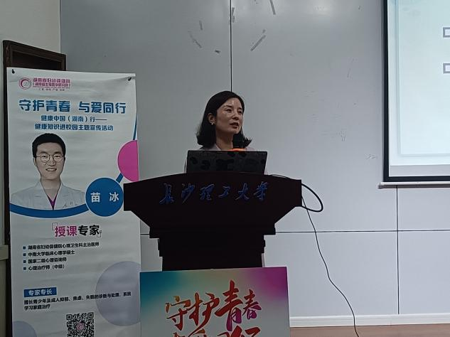 湖南省妇幼保健院心理卫生科主治医师苗冰以“心理健康与维护”为主题,他以心理健康标准为切入口,分析了心理健康与异常的主要影响因素。接着,他针对抑郁,焦虑,失眠等一系列常见心理问题原因作出了具体解析。他提出通过“爱自己”,“客观看待家长的高期待”,“学会冥想,慢下来”,“停止比较”这四个方式来促进与维护心理健康,鼓励学生正视心理问题,克服心理疾病。分享结束后,湖南省妇幼保健院的专家还为现场学生们提供了咨询服务。