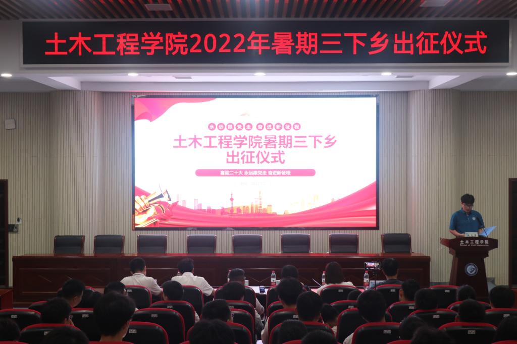 为加强学生思想政治教育,让学生在实践中增长智慧才干,在艰苦奋斗中锤炼意志品质。7月2日下午,土木工程学院在工科二号楼B302举办2022年暑期三下乡社会实践活动出征仪式。院党委副书记黄阿明,学生党总支副书记李小军、刘文成,团委书记董治佑,学工办老师龙承运、邓文杰出席本次出征仪式。本次仪式采取线上线下同时进行的方式,由团委学生会轮值主席王海川主持。