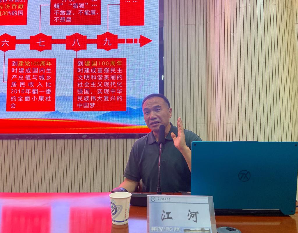 党课中,江河回顾了波澜壮阔的中国共产党百年奋斗历程,再现了党领导下的人民军队在历史重大关头承担救国使命的历史轨迹,展现了中国共产党矢志践行初心使命,团结带领人民进行革命、建设改革伟大实践的壮丽篇章。课上,江河还领学了党的二十大报告。他指出,党的二十大报告着眼于世界之变、时代之变、历史之变的特征,确立了一系列重大理论观点和重大战略思想,充分体现了马克思主义中国化时代化最新成果,是迈进新战略阶段的政治宣言和行动纲领。他希望全体学员原原本本学,持续跟进学,联系实际学。江河语言平实、历史事例生动详实、论述精辟,为全体学员上了一堂生动的党史教育课程。