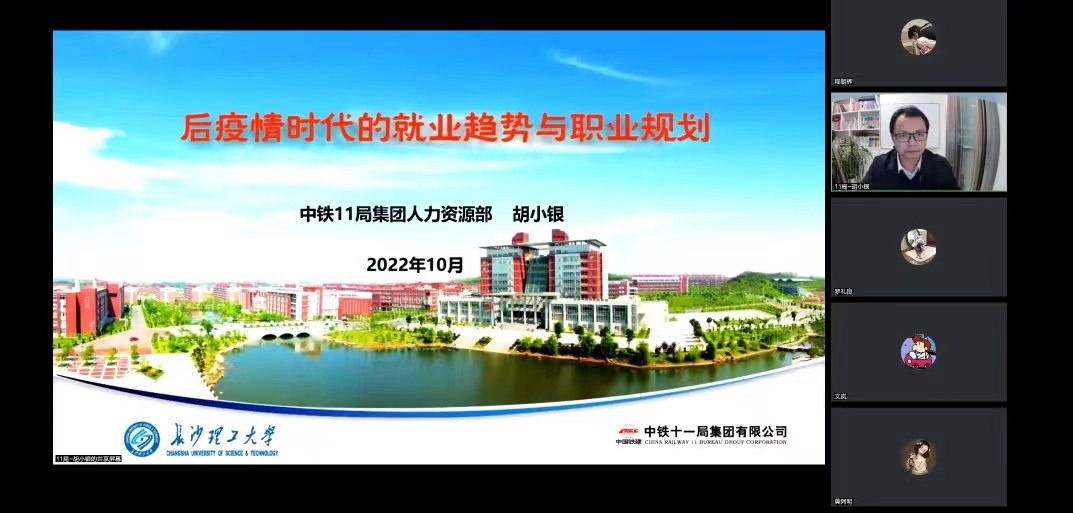 为帮助学生更好了解土木行业发展趋势,帮助学生提前做好职业规划,10月27日晚,学院邀请中铁十一局集团人力资源部副部长胡小银为大三年级本科生做“后疫情时代的就业趋势与职业规划”专题讲座。学院党委副书记黄阿明,辅导员文岚及530余名学子参加。
