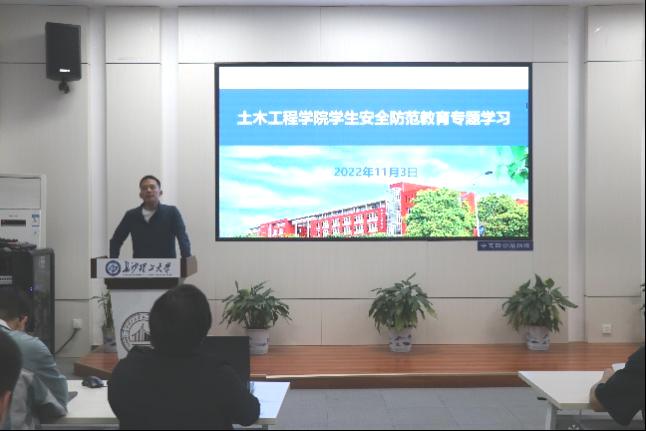 为进一步提高学院学生的安全防范意识和能力,杜绝安全隐患11月3日晚,土木工程学院在工二A304召开消防安全教育会议。党委副书记黄阿明学工办王中兴汪国栋、文岚及各班级班长参加会议。会议由学工办邓文杰主持。