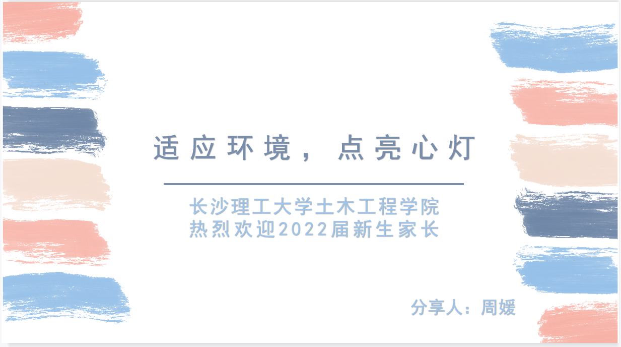 2022年8月26日,土木工程学院通过腾讯会议举办了主题为“适应环境,点亮心灯”的2022级新生的家长会,学院心理辅导员周媛老师以及各位新生家长们参加了本次会议。