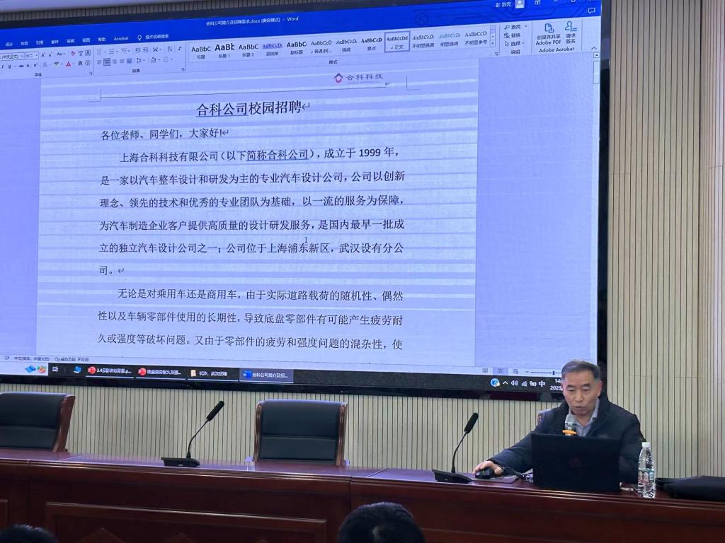 王有智首先做了以“底盘疲劳耐久及强度一体化新技术”为主题的讲座,他介绍了汽车底盘设计新技术研究历程以及现有技术与新技术对比,王有智指出现今的试验方法和仿真手段,对零部件级别的分析方法已完善,但对于整车级别的仿真方法却未得到有效的解决方案,以至于在整车状态下的底盘疲劳耐久及强度问题的仿真方法成为一个世界性难题。他鼓励同学们积极讨论解决方案和提出自己的问题与思考,他希望土木学子要扎实学好专业知识,及时了解行业发展动态和前沿信息,敢于突破创新。