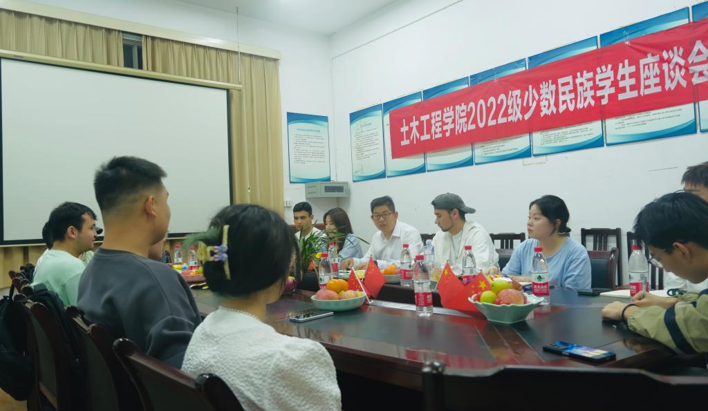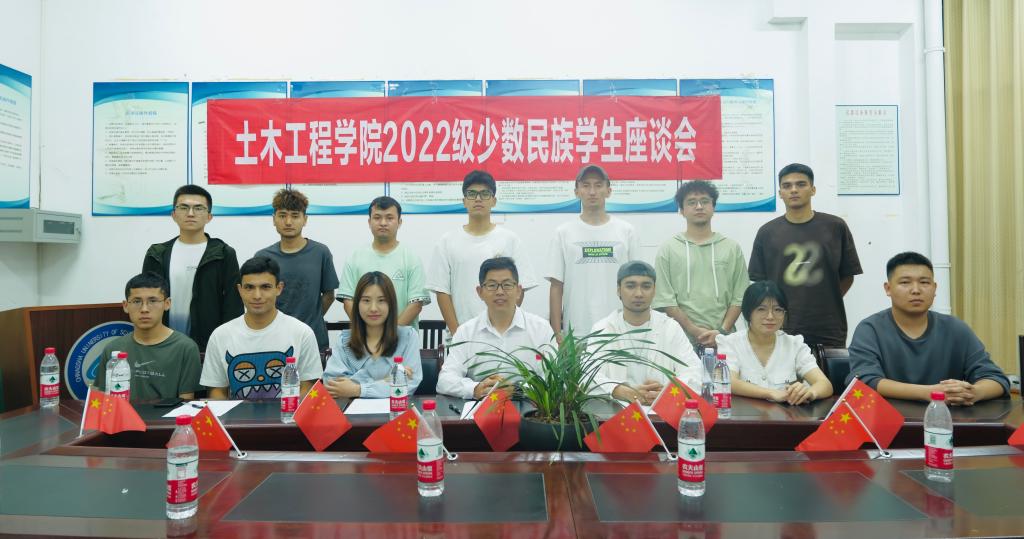 学习贯彻习近平新时代中国特色社会主义思想,铸牢中华民族共同体意识,促进各民族学生团结进步,419日,土木工程学院在11教会议室召开2022级少数民族学生座谈会。2022级辅导员林安妮老师,高年级优秀代表亚力洪江、阿布来提及2022级全体少数民族学生参加座谈。学工办李小军老师主持会议