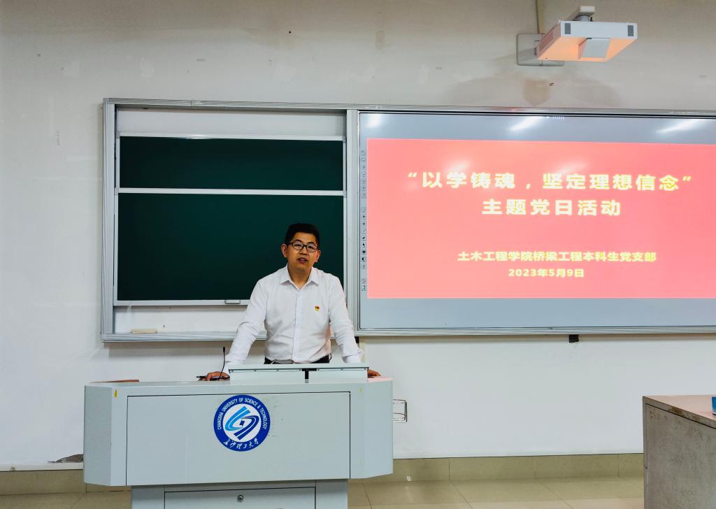 为学习贯彻习近平新时代中国特色社会主义思想主题教育,推动“一月一课一片一实践”落实落细,进一步增强党支部组织生活吸引力和实效性,59日土木工程学院桥梁工程本科生党支部云塘校区综合教学楼B-106开展以学铸魂,筑牢理想信念”主题党日活动。支部书记李小军老师,全体党员及部分入党积极分子参加活动。