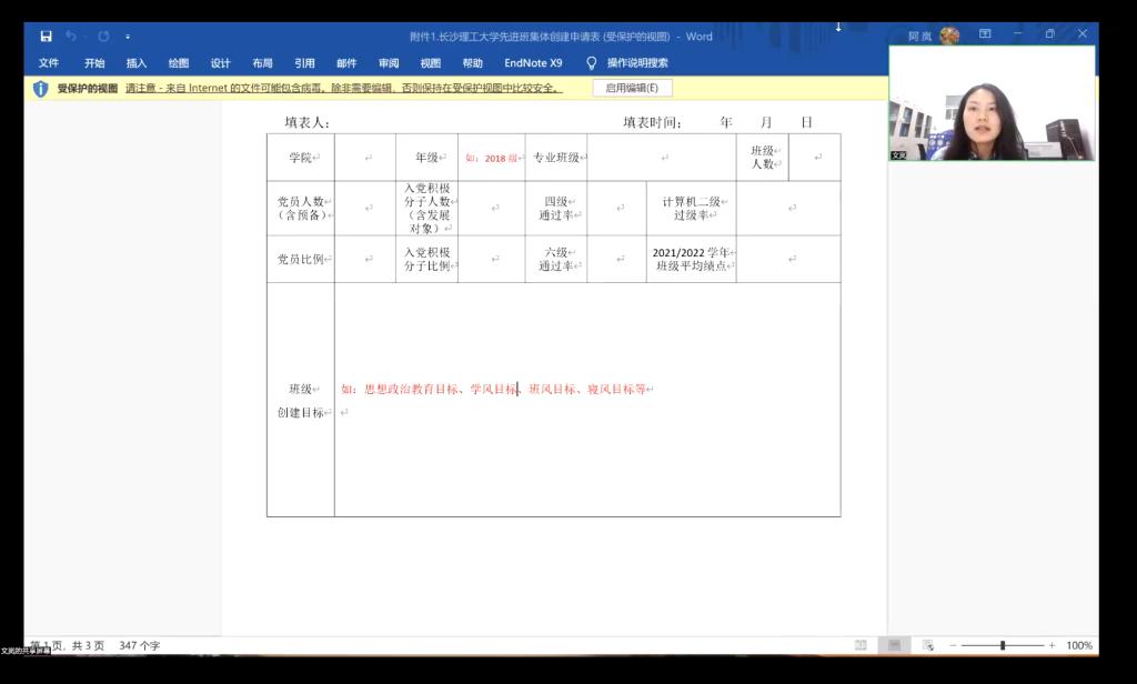 为进一步推动我院班风、学风建设,增强班级凝聚力,根据《伟德betvlctor1946源于英国先进班集体创建评比办法》(长理工大学〔2022〕16号)的相关要求,指导做好2023年先进班集体创建活动,土木工程学院5月9日晚通过腾讯会议平台召开了先进班集体创建工作部署会议。院学工办文岚老师、日常管理组全体成员和19个班级代表参加会议,会议由日常管理组组长曹桂香主持。