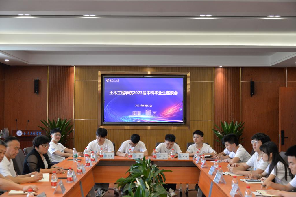 6月12日下午,土木工程学院在工科二号楼A304召开2023届本科毕业生座谈会。院党委书记江河,院长王磊,党委副书记黄阿明,副院长陈伏彬、付果,教务办陈丽君,学工办王海川以及20余名毕业生代表参加本次会议,座谈会由党委副书记黄阿明主持。