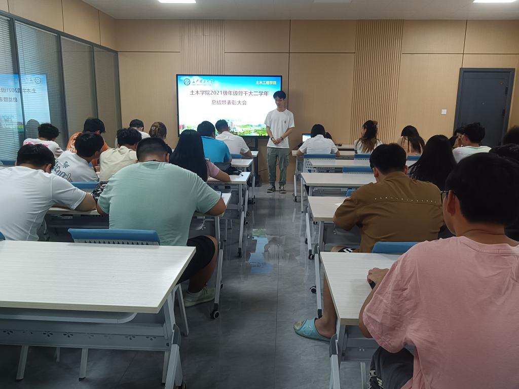 6月20日中午,土木工程学院于弘三一站式社区召开2021级大二学年总结暨表彰大会。2021级辅导员刘文成、邓文杰及全体年级骨干70余人参会,会议由年级组成员余瀚泷主持。