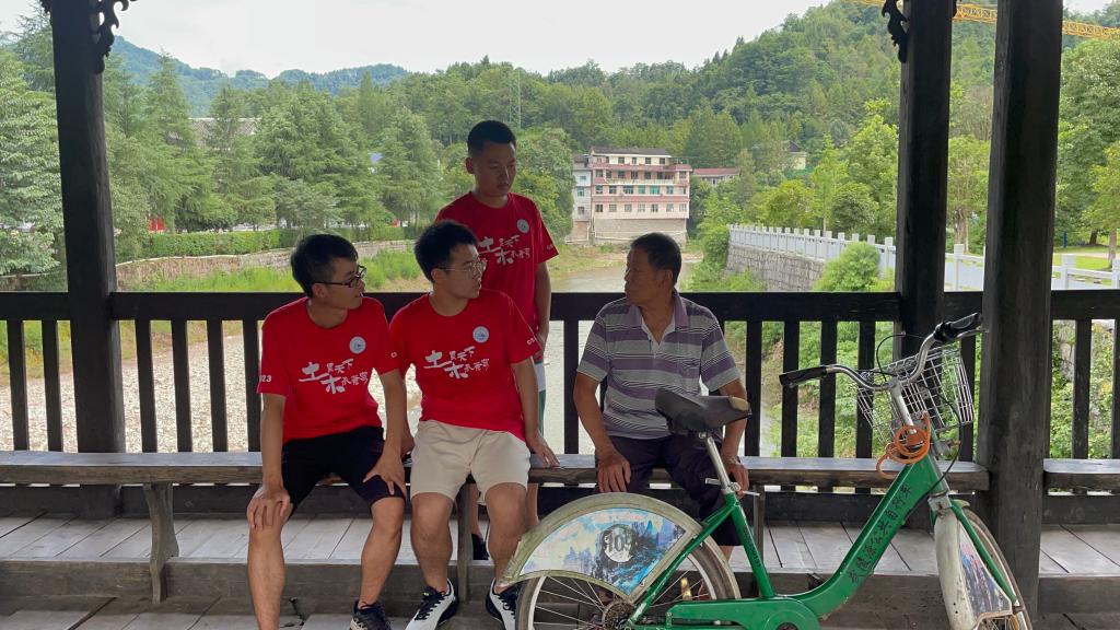 走上贺龙桥,许多当地人在桥上乘凉,成员张俊豪由此想到:“这座桥从始建开始就为当地人民提供了便利,造福了当地人民,现在仍在默默肩负着它的使命。”随后,团队把目光对准贺龙桥本身,运用自身的专业知识对贺龙桥的结构及构造进行探究。他们发现贺龙桥经过重修后,整体结构完整,结构性能基本完好。“贺龙桥已度过百年岁月,经历数次大修。虽然贺龙桥的现貌与原貌早已相差甚远,但在时间的流淌里,蕴含在贺龙桥中的红色血脉亘古不变。”成员胡佯了解这段历史后不禁感慨。