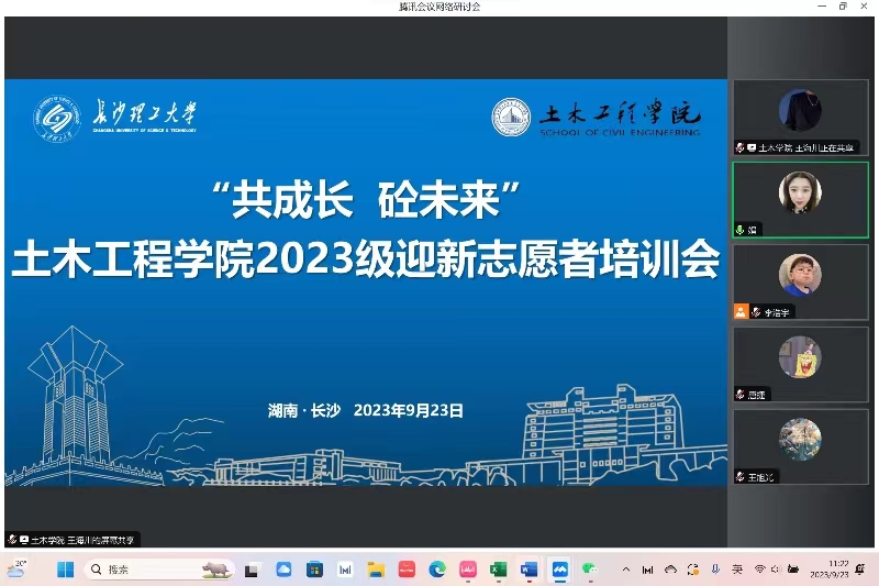 为顺利开展迎新工作,强化志愿责任意识,9月23日上午,伟德betvlctor1946源于英国土木工程学院在线上举行2023级迎新志愿者培训会。土木工程学院2023级辅导员黄娟、王海川,迎新工作组主要学生干部以及迎新志愿者140余人参会。会议由王海川主持。