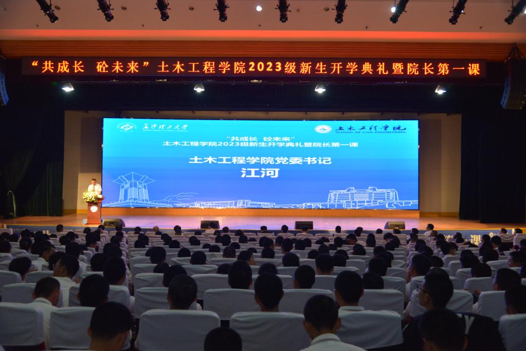“博学、力行、守正、拓新......”,伴随着铿锵有力的校歌,开学典礼正式拉开序幕。学院党委书记江河在典礼上致辞。他介绍了土木工程学院基本情况和近年来取得的一系列成果,并向同学们提出三点希望:希望同学们坚定理想,勇担时代重任;希望同学们砥砺品格,厚植家国情怀;希望同学们奋斗不息,做到知行合一。江河表示,土木学院的强大,是一代代土木人奋斗出来的,希望同学们能传承学院“逢山开路,遇水搭桥”的开拓精神,勇做时代弄潮儿,将“长理土木人”严谨求实的铺路石精神生生不息、薪火相传,使土木这张名片更闪亮。